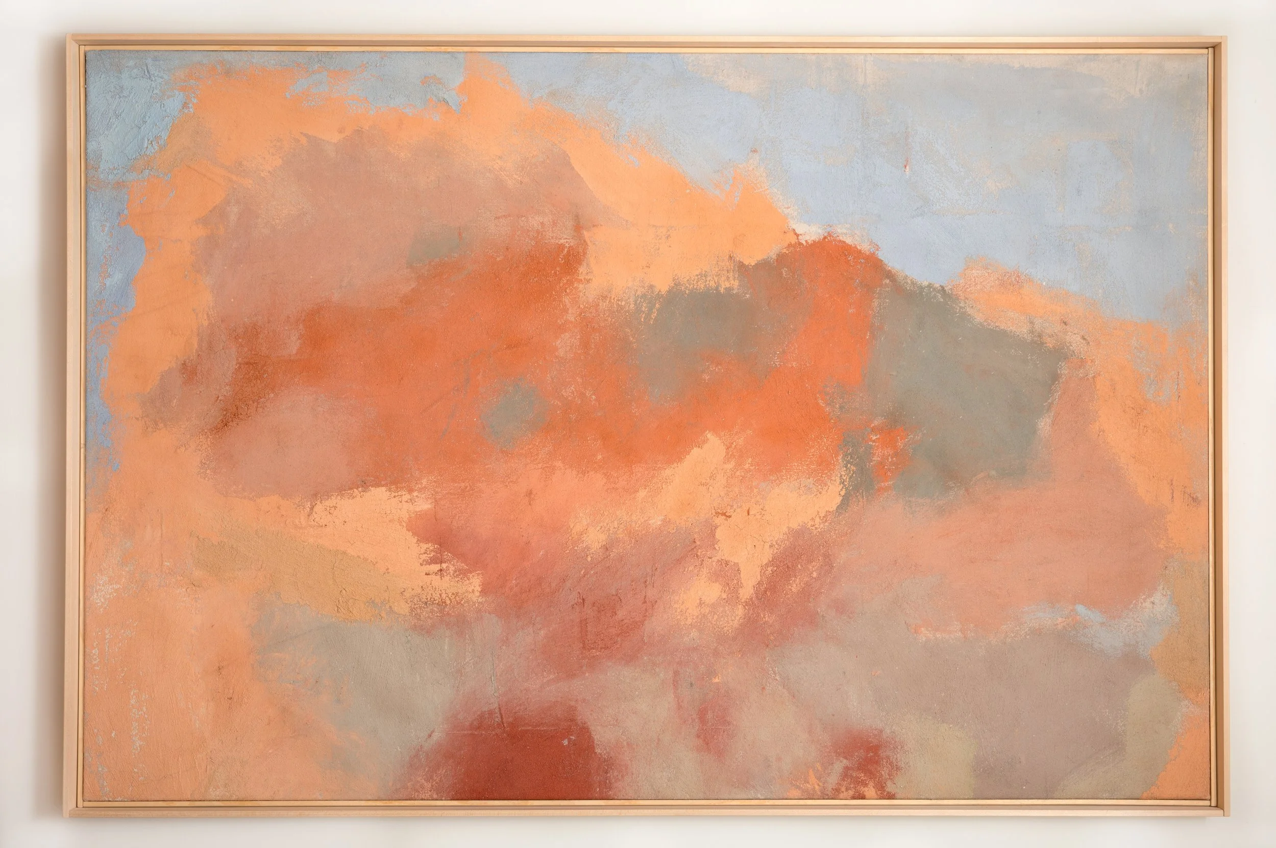 Clay paints, crushed terra cotta, Earth pigments, sand on stretched canvas with oak frame